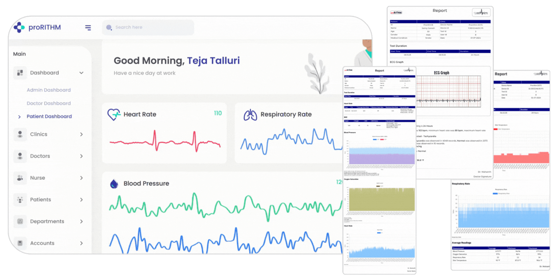 proRITHM is a Remote Patient Monitoring (RPM) platform that uses an advanced wearable device and Artificial Intelligence (AI) to continuously track a patient’s vital signs in real-time.Real-Time Analysis: The proRITHM IR platform uses advanced algorithms and AI to analyze this data instantly.Early Detection & Alerts: It is designed to identify subtle patterns, trends, and abnormalities, sending personalized, timely alerts to healthcare providers when a patient’s health status changes or deteriorates. This helps in early intervention.
